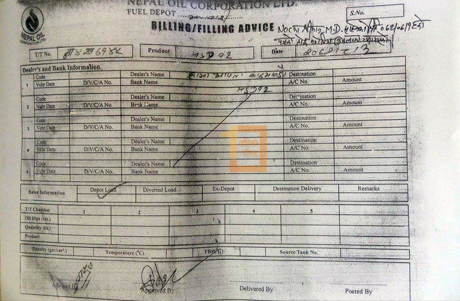 यही निर्देशनका आधारमा डिपो प्रमुख यादवले बिहीबार यो पम्पलाई डिजेल दिएका हुन्। उनले हामाको नाममा दिएको तेलकोे चलानीमा ‘एनओसीका श्रीमान् एमडी साहेबको कातिक १५ पत्रको तोक बमोजिम उपलब्ध गराएको’ उल्लेख छ।