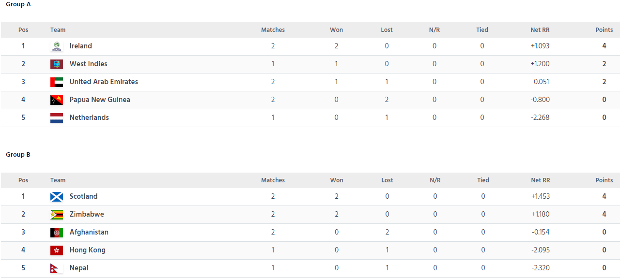 समूह ए कै अर्को खेलमा आयरल्याण्डले पपुवा न्यूगिनीलाई ४ विकेटले पराजित गर्दै लगातार दोस्रो जित हासिल गरेको छ।