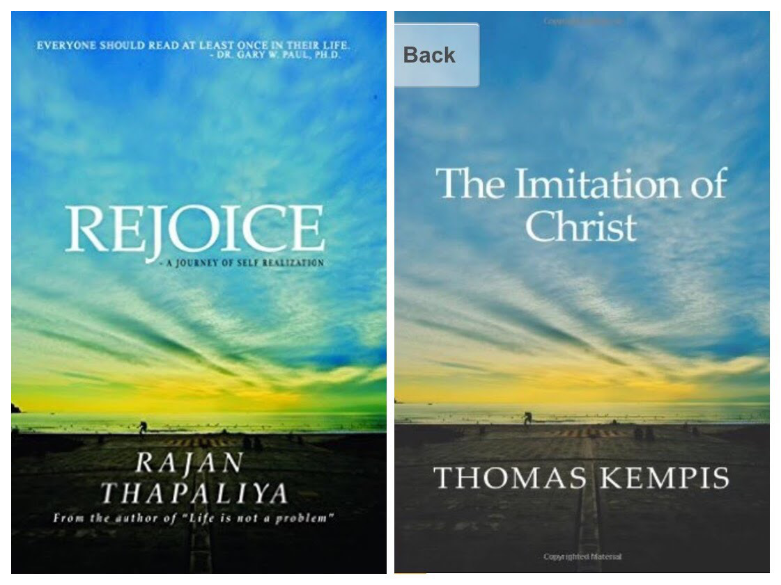 राजन थपलियाको कविता संग्रह 'रिज्वइस' को आवरण 'द इमिटिसन अफ क्राइस्ट' को आवरणसँग हुबहु मिल्यो।