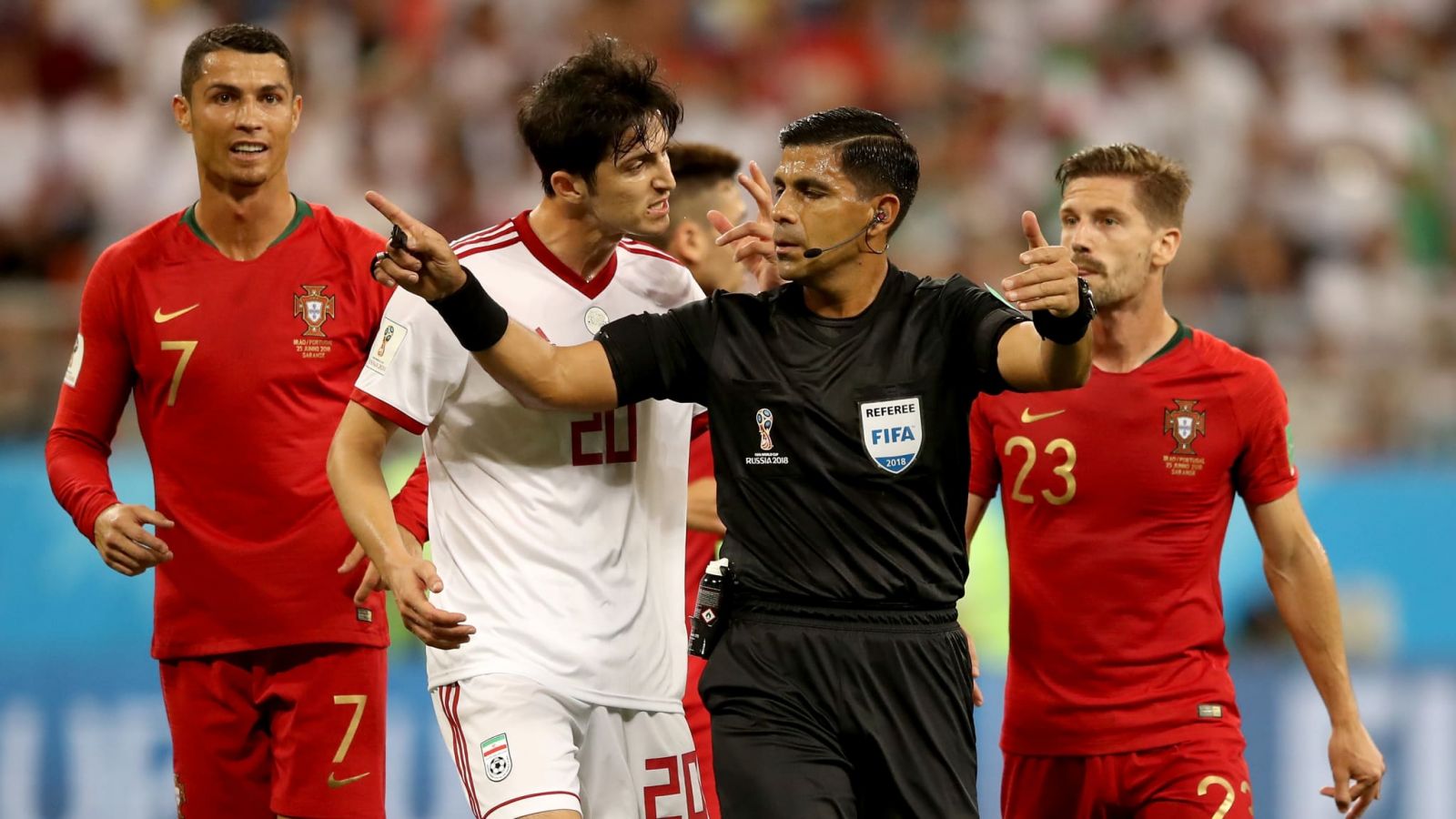 रोनाल्डोले इरानका मिडफिल्डर मोर्टेज पउरालिनगान्जीलार्इ कुहिनोले हाने पछि उक्त घटना भिएआर मार्फत रेफ्रीले हेरेका थिए। भिडियो हेरेपश्चात रोनाल्डोलार्इ रेफ्रीले पहेँलो कार्ड दिएका थिए।