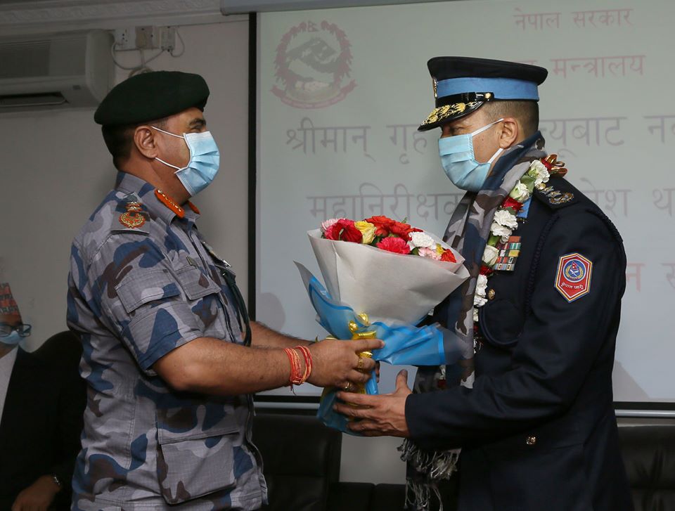 काठमाडौं: नेपाल प्रहरीका नवनियुक्त महानिरीक्षक शैलेश थापा क्षेत्रीले आज दर्ज्यानी चिन्ह पाए। पदभार पनि ग्रहण गरे। गृहसचिव महेश्वर न्यौपानेले फूली लगाइदिए। फूली लगाइसकेपछि अर्धसैन्य बल सशस्त्र प्रहरी महानिरीक्षक शैलेन्द्र खनालसहित सशस्त्र प्रहरीका उच्च अधिकारीले नवनियुक्त महानिरीक्षक थापाको स्वागत गरे।