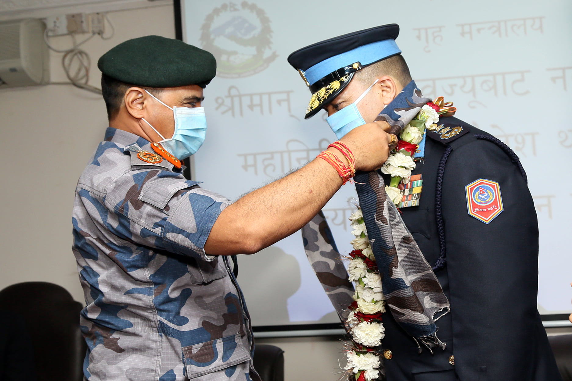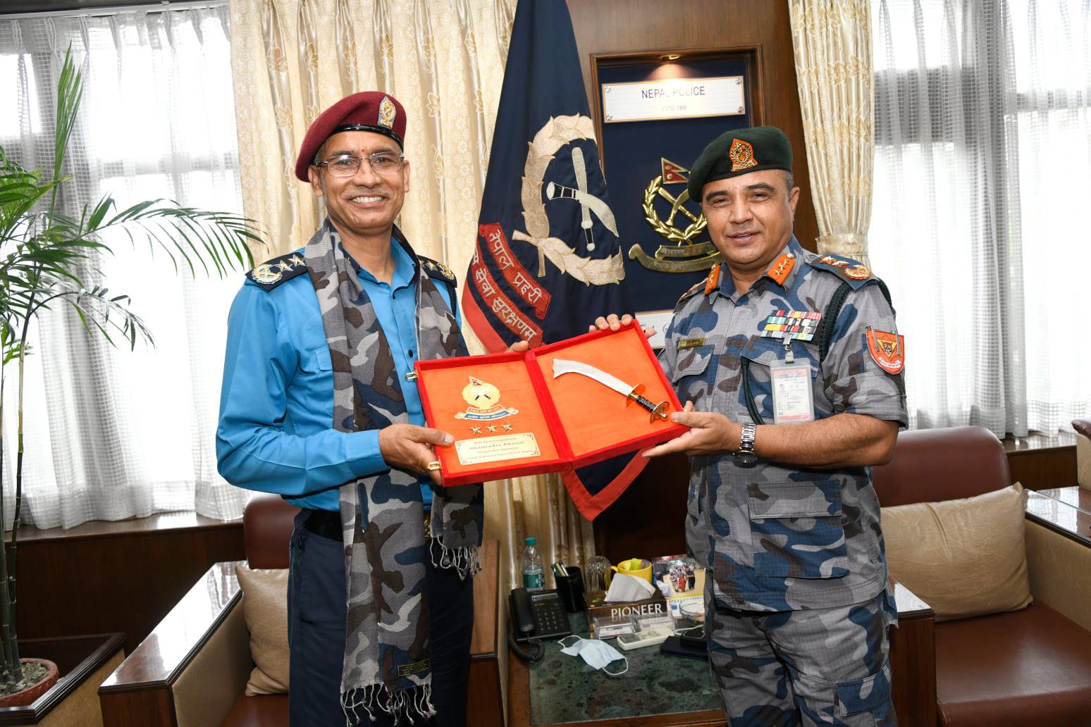 सशस्त्र महानिरीक्षक खनालले निवर्तमान आईजीपी ठाकुर ज्ञवालीलाई मायाको चिनो दिएर विदाई गरे। खनालले थापालाई कार्यकाल र ज्ञवालीलाई अवकाश पछिको जीवन सफलताको शुभकामना दिए।
