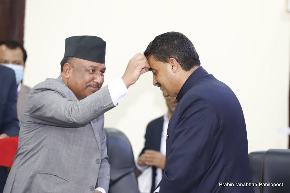 काठमाडौं: राष्ट्रिय खेलकुद परिषदको सदस्य सचिव र उपाध्यक्षले आज सपथ ग्रहण गरेका छन्। युवा तथा खेलकुद मन्त्रालयमा मन्त्री जगतबहादुर विश्वकर्माले सदस्य सचिव रमेशकुमार सिलवाललाई र उपाध्यक्ष शिव कोइरालालाई सपथ गराएका हुन्।