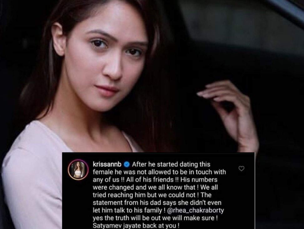टेलिभिजन कलाकार एवं सुशान्तकी मित्र क्रिस्सन्न बरेटोले रियाले सुशान्तलाई सबैबाट टाढा बनाएर एक्ल्याएको दावी गरेकी छन्। बरेटोले ट्वीटरमा लेखेकी छन्, ‘जहिलेदेखि सुशान्तले यी महिलासँग डेटिंग सुरु गरेका थिए, त्यहीँबाट उनलाई हामी सबैको टचमा रहन दिइएन। उनको नम्बर परिवर्तन गरियो। यो सबै कुरा हामीलाई थाहा छ। हामीले सुशान्तसम्म पुग्ने कोशिश गर्यौं। तर सफल हुन सकेनौं।’