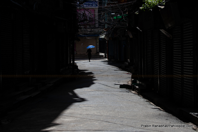 आज तीजको दर खाने दिन अरु समयभन्दा बढी चहल पहल हुन्थ्यो। तर, उपत्यकाका तीन जिल्लामा सुरु भएको निषेधाज्ञाले त्यस्ता गतिविधिलाई पूरै निस्तेज पारेको छ। यी दृष्यहरुले शहरको शून्यतालाई झल्काउँछ। यस्तो शून्यता लगातार १ सय २० दिन भोगेका नेपालीले अब कामना मात्र गर्न सक्छन् - त्यसरी नै लामो नबनोस् यसापालाको नाम फेरिएको 'लकडाउन'।