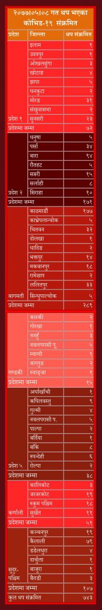 पछिल्लो २४ घण्टामा वाग्मती प्रदेशमा सबैभन्दा बढी संक्रमित पहिचान भएका छन्।