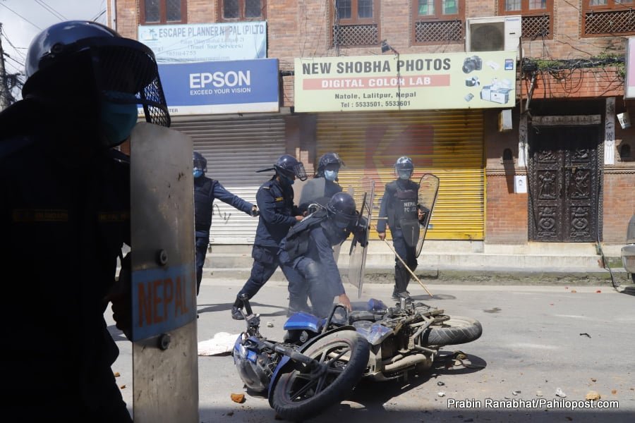 दिउँसो १ बजेपछि भने अवस्था तनावपूर्ण बन्दै गएको थियो। प्रहरीको परिचालन बाक्लिँदै गएपछि युवाहरु आक्रमक देखिएका थिए। प्रहरीले वाटर क्यानन लिएर पुगेपछि प्रहरीमाथि ढुंगामुडा प्रहार भएको थियो। त्यसपछि प्रहरीले पानीको फोहराले हान्न थालेको छ। प्रदर्शनकारीले प्रहरीलाई खेदेका छन्।