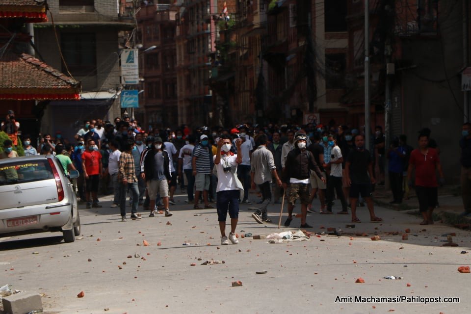 दिउँसो १ बजेपछि भने अवस्था तनावपूर्ण बन्दै गएको थियो। प्रहरीको परिचालन बाक्लिँदै गएपछि युवाहरु आक्रमक देखिएका थिए। प्रहरीले वाटर क्यानन लिएर पुगेपछि प्रहरीमाथि ढुंगामुडा प्रहार भएको थियो। त्यसपछि प्रहरीले पानीको फोहराले हान्न थालेको थियो।