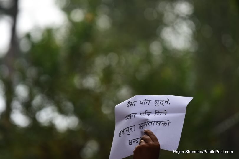 भक्तपुर : यहाँको इवामुरा अस्पतालले मृत्यु भएको भनेको व्यक्तिको नर्भिक अस्पतालमा उपचार सुरु गरिएको छ। इन्डोस्कोपी गर्न गएका ४७ वर्षीय लक्ष्मीकुमार लाखाजुको ज्यान जोखिममा पारेको भन्दै अस्पतालविरुद्ध स्थानीय उत्रिएका छन्।