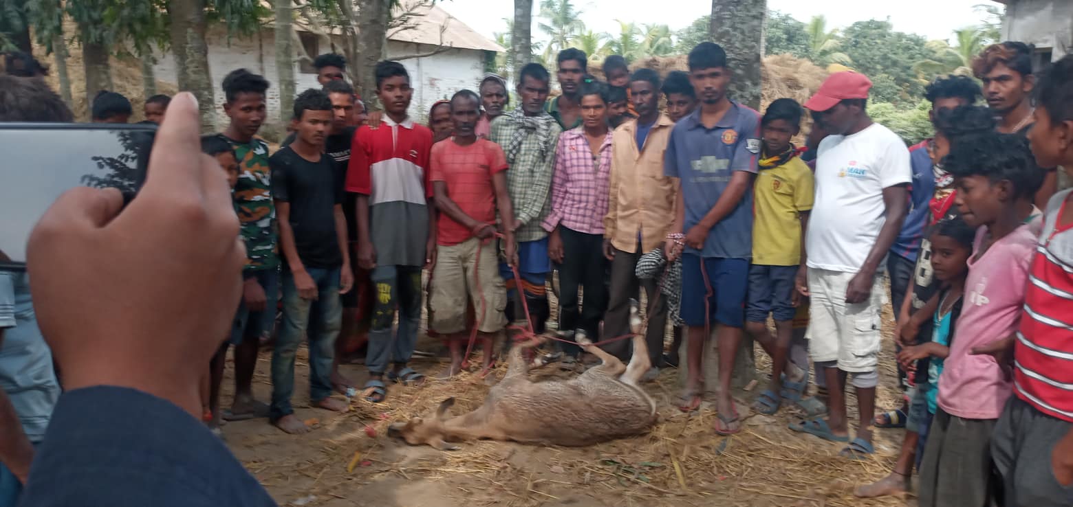 रंगेली नगरपालिका वडा नम्वर ३ दौलतपुरममा शिव कुमार मण्डलको पोखरी छेउमा आएको भाले हरिण नियन्त्रणमा लिएको हो।