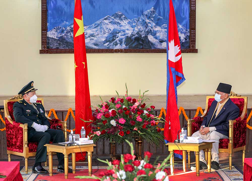 काठमाडौं : चिनियाँ स्टेट काउन्सिलर तथा रक्षामन्त्री वेइ फङ्ह र प्रधानमन्त्री केपी शर्मा ओलीबीच शिष्टाचार भेट भएको छ।