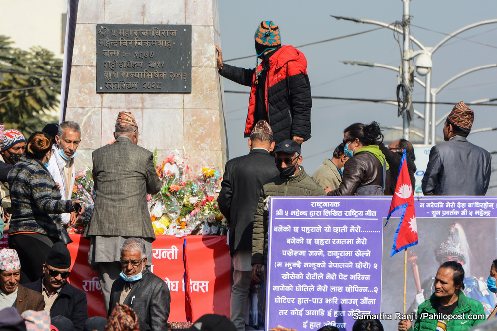 महेन्द्र चीर स्मरण समितिले काठमाडौं दरवारमार्गमा रहेको राजा महेन्द्रको शालिकमा माल्यार्पण गर्दै महेन्द्रलाई सम्झिएको हो।