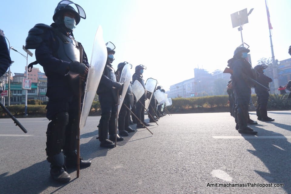 प्रर्दशनलाई व्यवस्थित र सुरक्षित बनाउनको लागि बाक्लो समुहमा सुरक्षाकर्मी परिचनालन गरिएको छ। निषेधित क्षेत्र निर्वाचन आयोगमा प्रर्दशनकारी प्रवेश गर्न सक्ने भएकाले त्यहाँको सुरक्षा व्यवस्था कडा बनाइएको छ। महानगरीय प्रहरी परिसर काठमाडौंका एसपी सोमेन्द्रसिंह राठौरको नेतृत्वमा सुरक्षा प्रबन्ध मिलाएको छ।