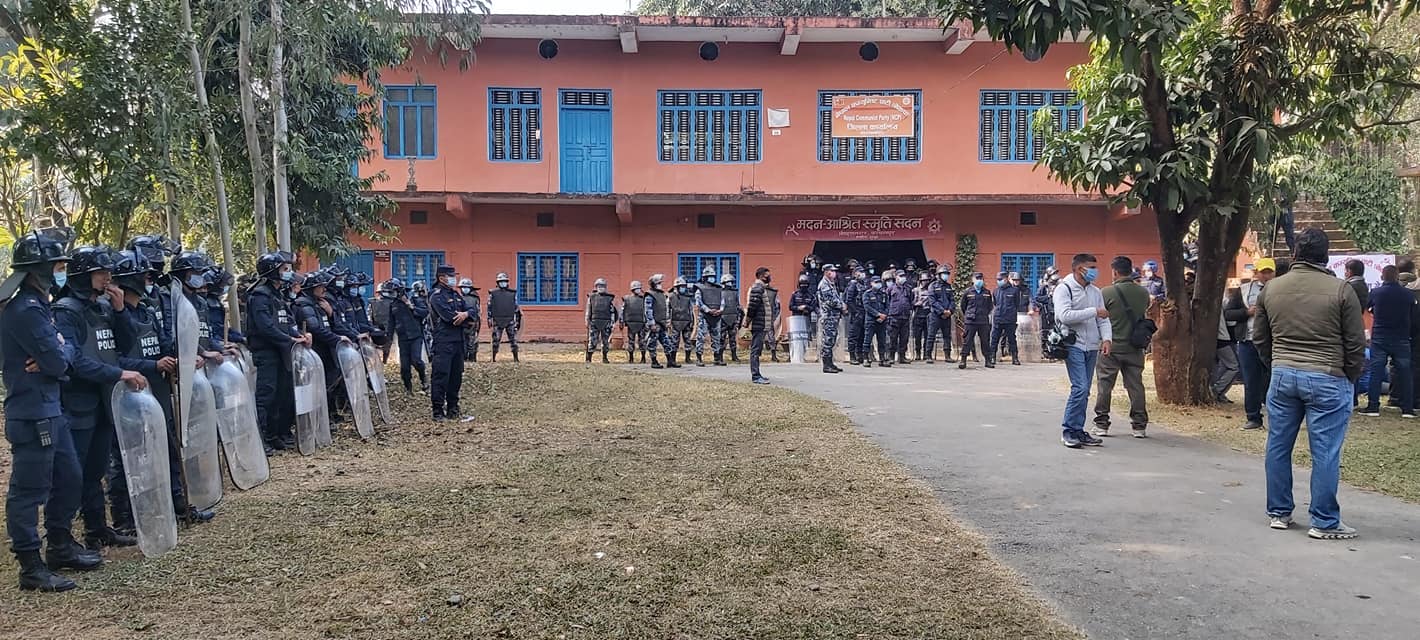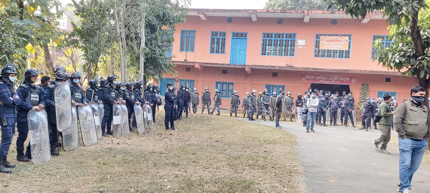 पार्टी कार्यालयमा झडप भएपछि नेपाल प्रहरी र सशस्त्र प्रहरीका डीएसपीको कमाण्डमा पार्टी कार्यालयमा ठूलो संख्यामा सुरक्षाकर्मी परिचालन गरिएको छ।