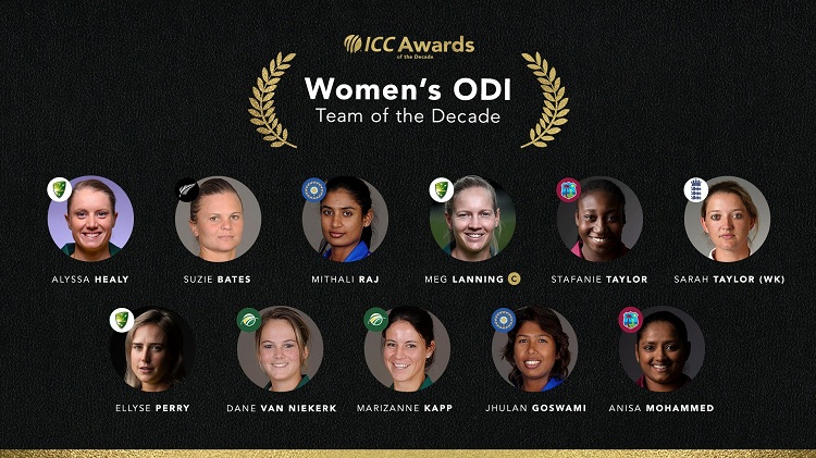 त्यस्तै आईसीसीले महिलातर्फ पनि दशकको उत्कृष्ट एकदिवसीय टिम बनाएको छ।