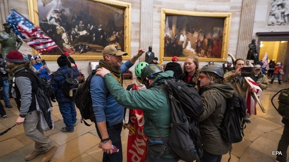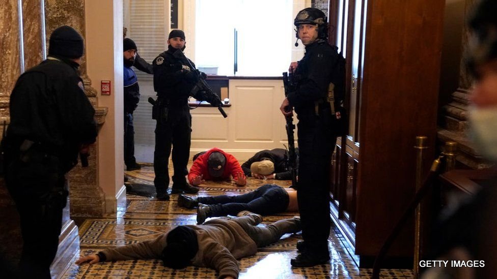 राष्ट्रपति ट्रम्पको उक्साहटमा आज अमेरिकी संसदमा जे देखियो त्यो तेस्रो विश्वका लागि सामान्य भए पनि सिस्टममा चल्ने अमेरिकाका लागि भने असामान्य थियो। अराजक भिडको हिंसात्मक गतिविधि तेस्रो विश्वमा देखिँदै आएको हो। तर, जुन कुरालाई लिएर अमेरिकीले तेस्रो विश्वका नागरिकप्रतिको दृष्टिकोण बनाउँथे, त्यो आज अमेरिकी संसदमा देखियो। कार्यकाल भरि नै विवादित रहेका अमेरिकी राष्ट्रपति ट्रम्पको कार्यकालका अन्तिम क्षणहरु वदनाम नै हुने दृष्य देखियो। हेर्नुस् अराजक दृष्यहरु :