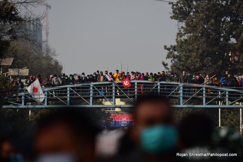 काठमाडौं : पार्टीको अन्तरकलह सम्हाल्न नसक्दा प्रधानमन्त्री केपी शर्मा ओलीले प्रतिनिधिसभा विघटन गरेपछि आज उनको कदमविरुद्ध राजधानीमा भव्य प्रदर्शन भयो। आन्दोलनमा उत्रिएको नेकपाले आज राजधानीमा शक्ति प्रदर्शनसहितको सभा आयोजना गरेको हो।