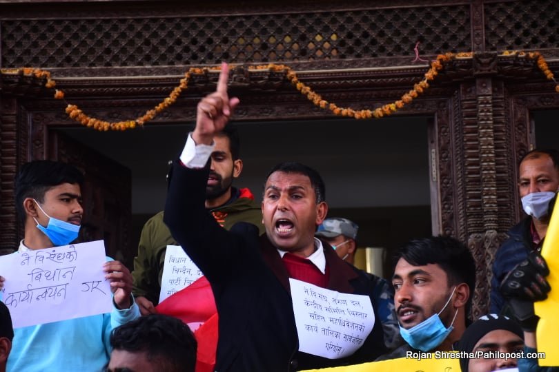 पार्टीको केन्द्रीय समिति बैठकमा सहभागी हुन एक घन्टा ढिलोगरी पुगेका सभापति देउवासँग नेपाल विद्यार्थी संघका कार्यकर्ताले सोधेका थिए - विधान कहाँ छ? भातृ संगठनहरुको अधिवेशन गराउन नसकेको आरोप खेप्दै आएका सभापति देउवा सरकारविरुद्ध कमजोर खालको आन्दोलनमा उत्रिएकोमा चर्को दवाव छ।