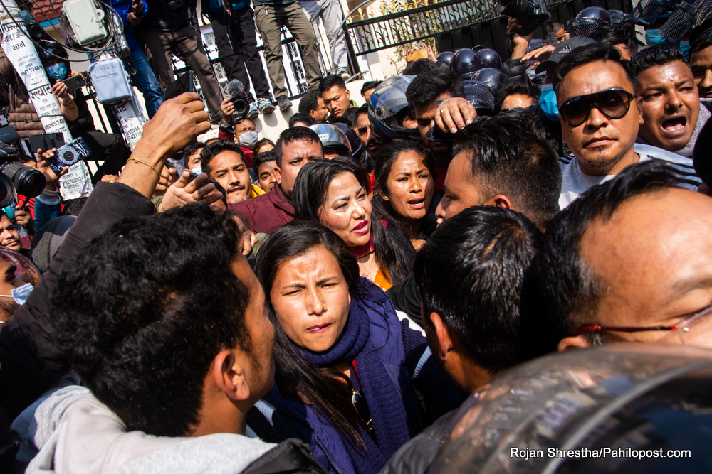 झाँक्रीले प्रहरीसँग जानुअघि उपस्थित सबैलाई सम्बोधन गरिन्। र, आफैँले गिरफ्तारी दिएको बताइन्। उनी घरबाट निस्किँदा सयौँ कार्यकर्ताको भीड थियो। उनीहरूले प्रहरीलाई रोक्न खोजे। तर, झाँक्रीले नै समर्थन गरेपछि कार्यकर्ता त्यति आक्रामक भएनन्। प्रहरी पनि संयम देखियो।