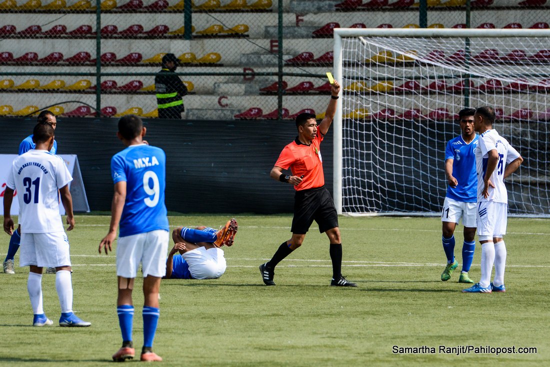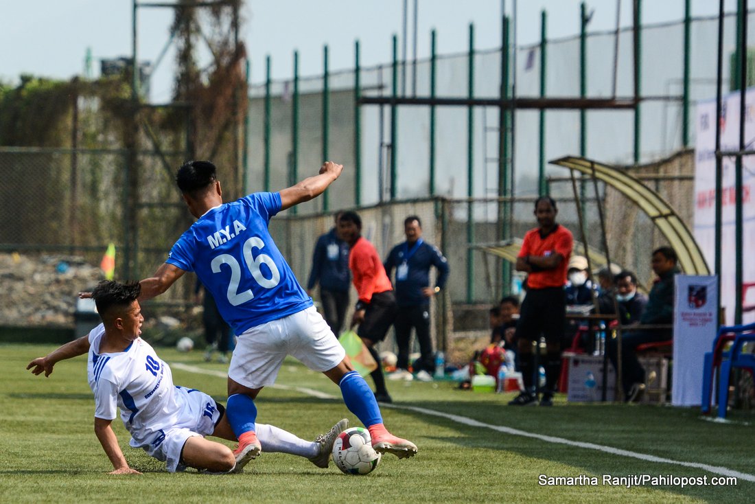 पहिलो हाफमा सचु गुरुङको गोलमा नयाँबस्तीले अग्रता बनाएको थियो। उनले खेलको ८ औं मिनेटमा अग्रता बनाएका थिए। दोस्रो हाफमा मध्यपुरले खेल बराबरीमा ल्यायो। खेलको ६७ औं मिनेटमा मध्यपुरका लागि भुपाल सिंह गुरुङ्ले गोल गर्दै खेल बराबरीमा ल्याए।