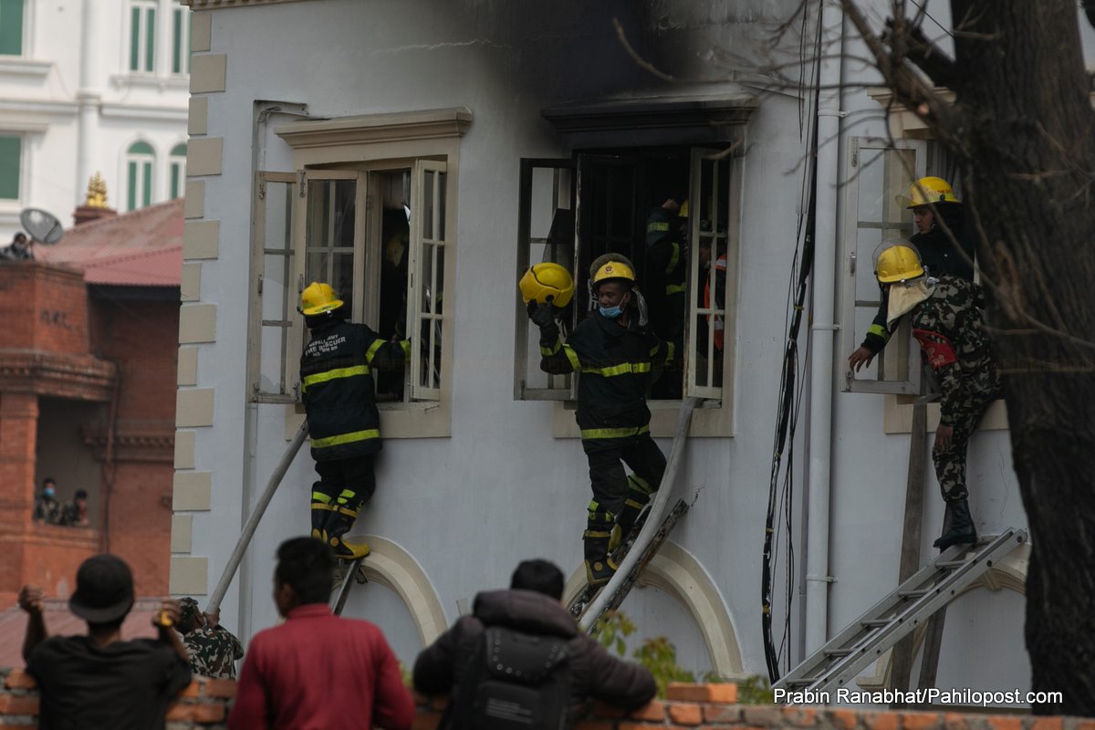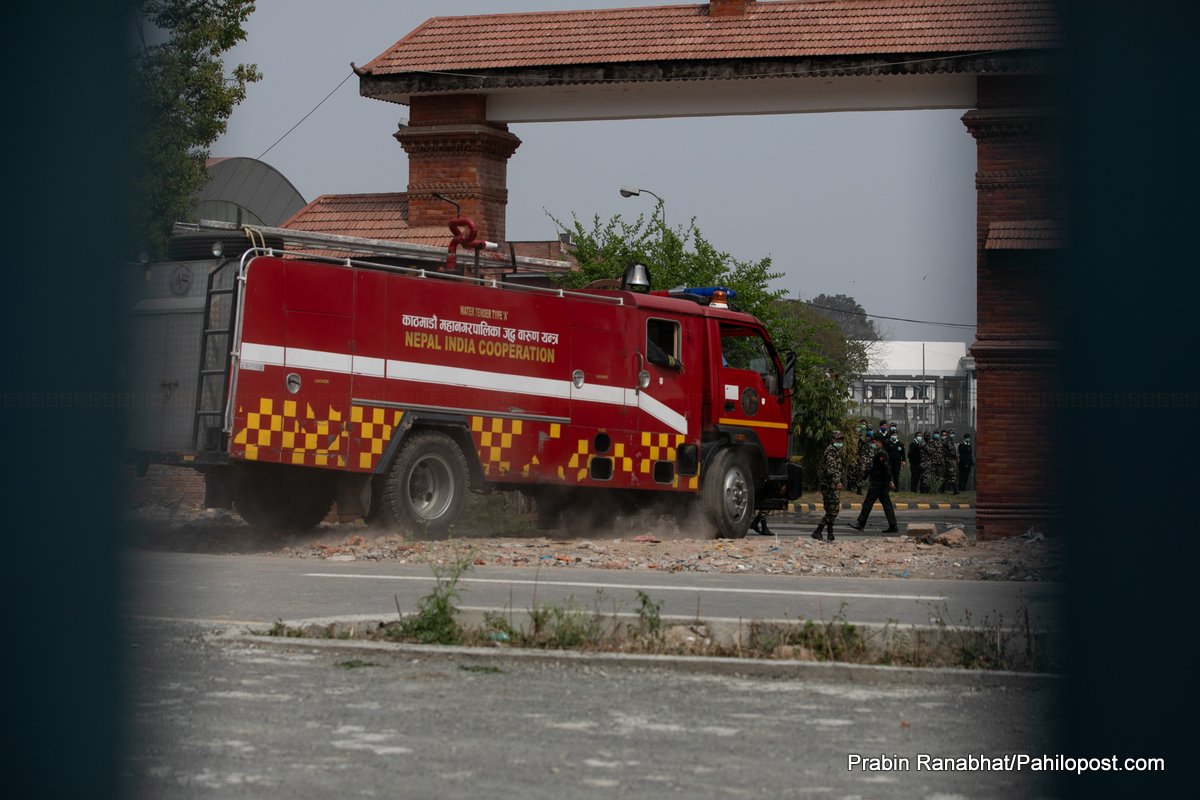 आगलागी भएलगत्तै तीनवटा दमकलले निभाउने प्रयास जारी राखेको त्यहाँबाट पहिलोपोस्टका संवाददाता प्रवीन रानाभाटले जानकारी दिएका छन्। संचारकर्मीलाई भित्र प्रवेश गर्न दिइएको छैन भने घटनामा के कति क्षति भएको जानकारी प्राप्त भइसकेको छैन।