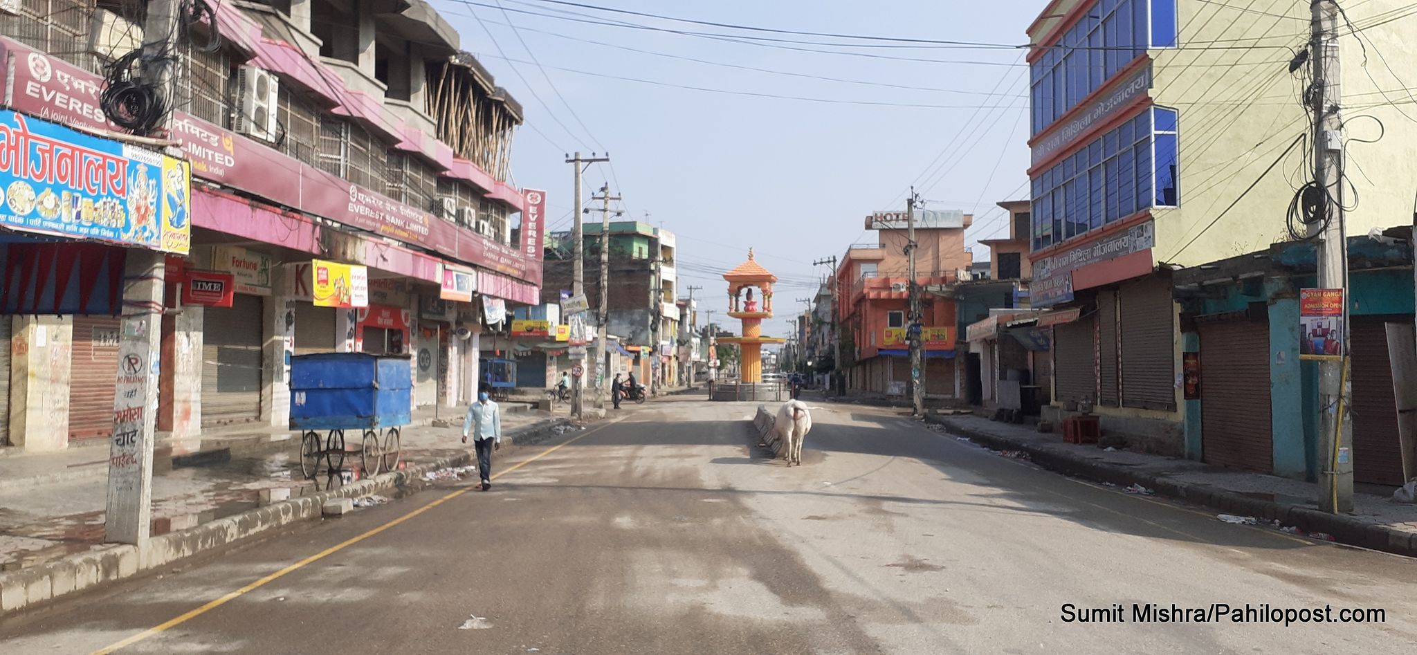 जनकपुरधाम : जिल्ला प्रशासन कार्यालय धनुषाले निषेधाज्ञा जारी गरेको चौँथो दिन आज प्रदेश २ को अस्थायी राजधानी जनकपुरधाम सुनसान देखिएको छ। कोरोना संक्रमण तीव्र गतिमा फैलिँदै गएपछि स्थानीय प्रशासनले मंगलवारदेखि लागू हुने गरी बैशाख ३१ गतेसम्मका लागि निषेधाज्ञा जारी गरेको हो।