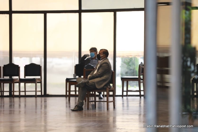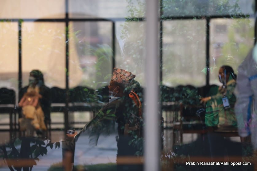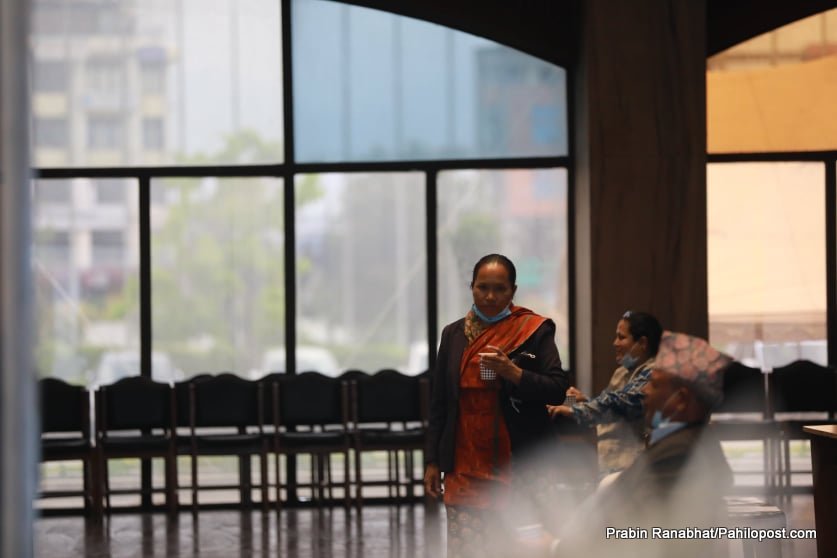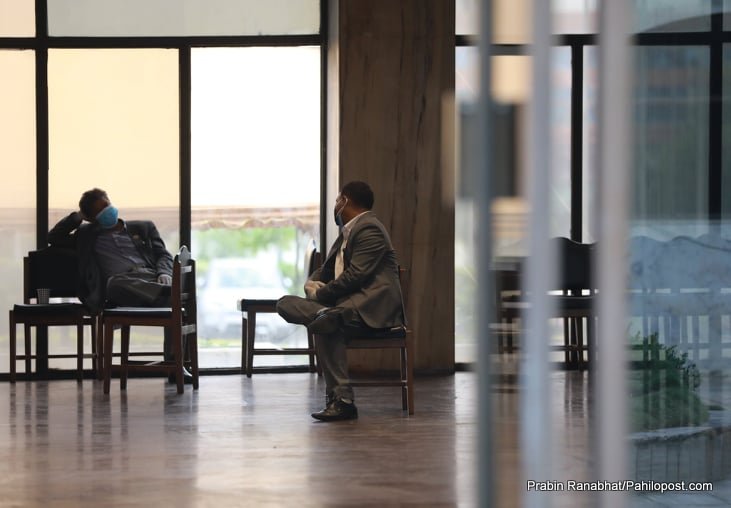 कोरोना संक्रमण भएका कारण केही सांसद भित्र छिर्न पाएनन्। उनीहरुका लागि छुट्टै व्यवस्था छ। त्यसैले उनीहरुलाई भित्रको माहोलले थोरै छोयो। उनीहरु चिया खाएर एक आफसमा गफ गर्दै समय कटाएको देखिन्थ्यो।