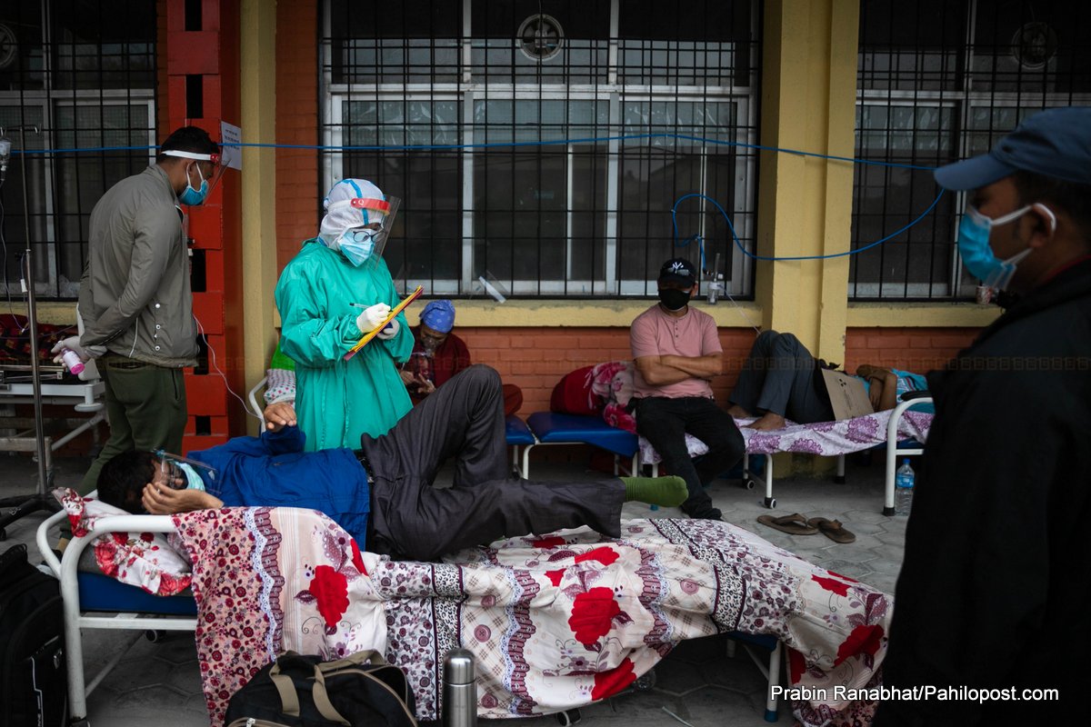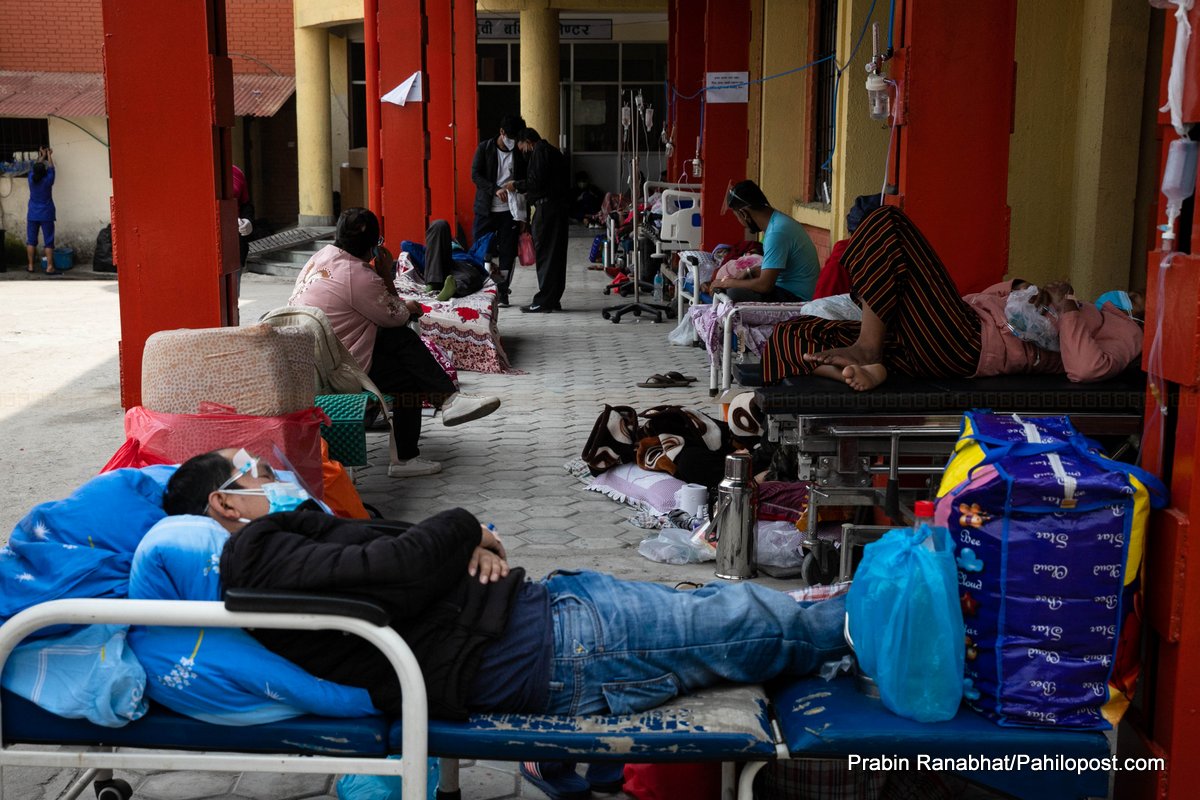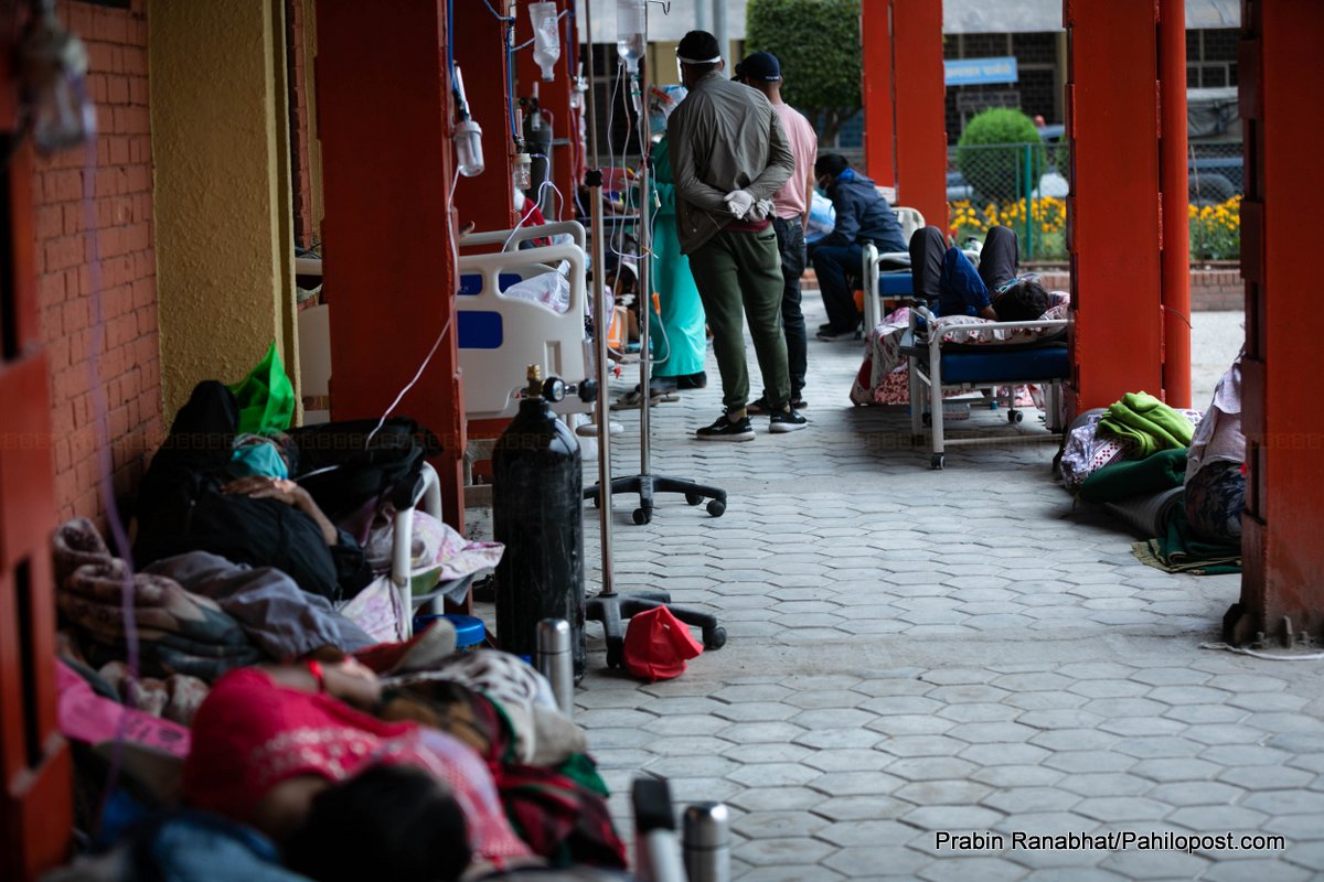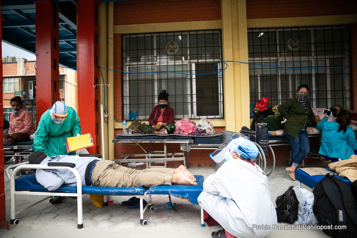 त्रिवि शिक्षण अस्पतालको अवस्था पनि उस्तै छ। अस्पताल बाहिर पनि संक्रमितलाई उपचार गरिएको छ। अस्पतालमा बेड नपाएर बिरामीहरु घण्टौँसम्म एम्बुलेन्समै बस्नुपर्छ भने कतिपयलाई त फर्कनुपर्ने बाध्यता पनि छ।