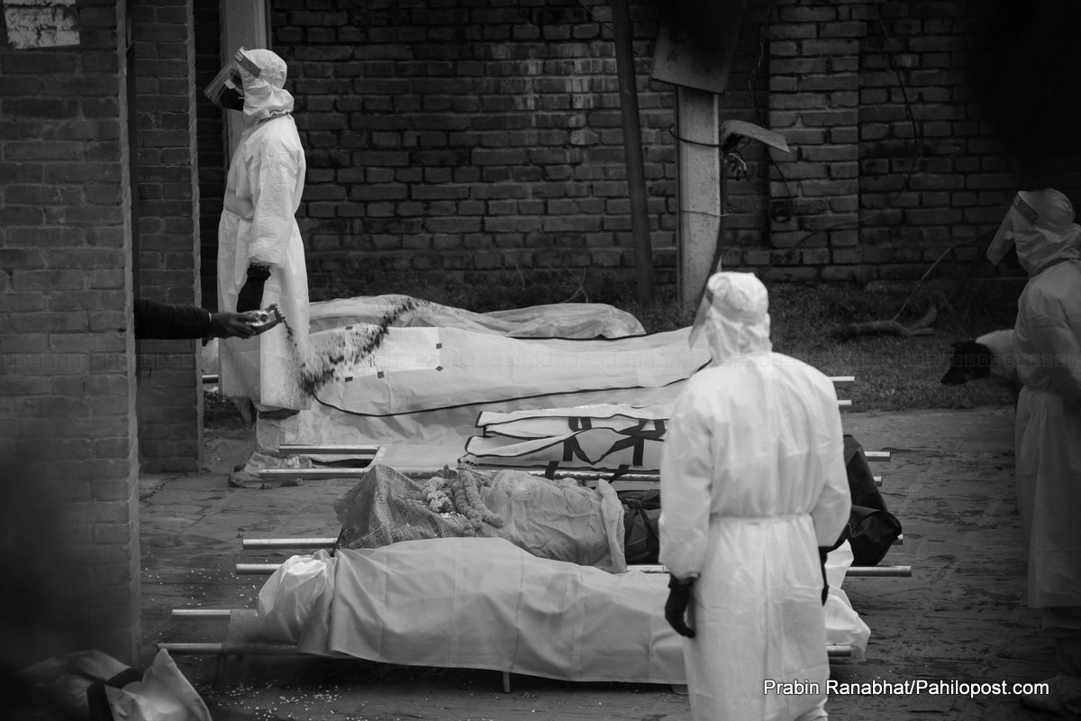 कोरोनाका कारण मृत्यु भएकाहरुलाई नेपाली सेनाले पशुपति आर्यघाटमा दाहसंस्कार गर्ने गरेको छ। संक्रमणका कारण मृत्यु हुनेको संख्या बढ्दा पशुपतिमा पनि चाप बढेको छ।