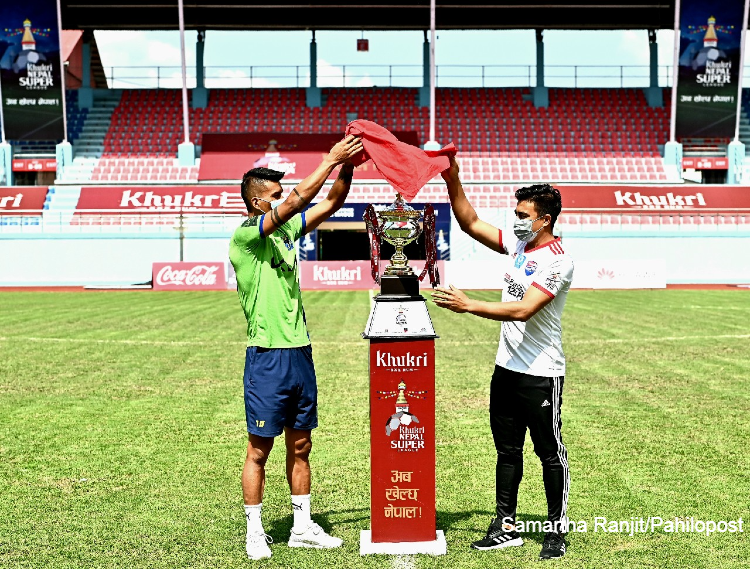 एनएसएलको फाइनलिस्ट काठमाडौं रेजर्स र धनगढी एफसीका कप्तान द्वय विकेश कुथु र किरण चेम्जोङले ट्रफी सार्वजनिक गरेका हुन्। प्रतियोगितको लिग चरणमा काठमाडौं शीर्षस्थानमा र धनगढी दोस्रो स्थानमा रहँदै प्लेअफमा स्थान बनाएका थिए। त्यस्तै प्लेअफमा काठमाडौंलाई हराउँदै धनगढी सोझै फाइनलमा पुगेको थियो भने काठमाडौंले दोस्रो प्लेअफ खेल्दै ललितपुरलाई हराएर फाइनलको यात्रा तय गरेको थियो। जारी प्रतियोगितामा काठमाडौं र धनगढी तेस्रो पटक आमने सामने हुनेछन्।