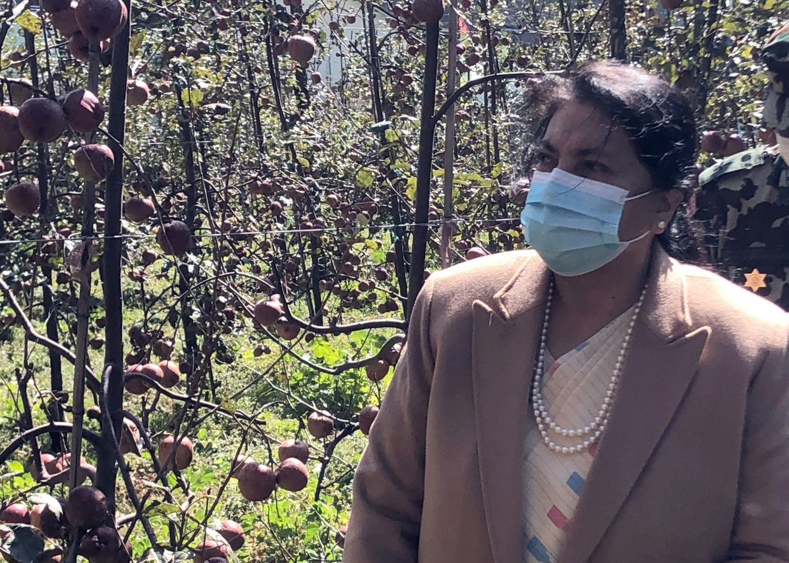 सांसद पाल्देन छोपाङ गुरुङको एग्रो मनाङ प्रालि स्याउ फार्मको अवलोकनमा उनी पुगेकी हुन्। यो स्याउ फार्म नेपालकै सबैभन्दा ठूलो फार्म हो।