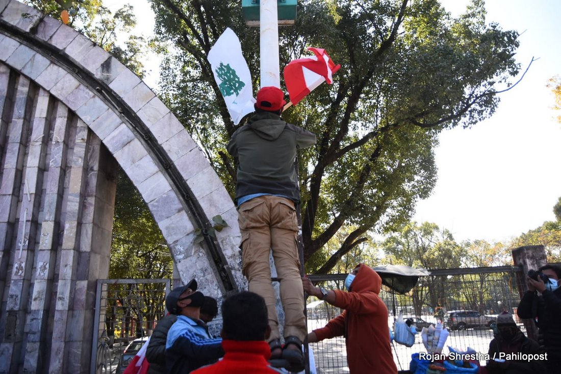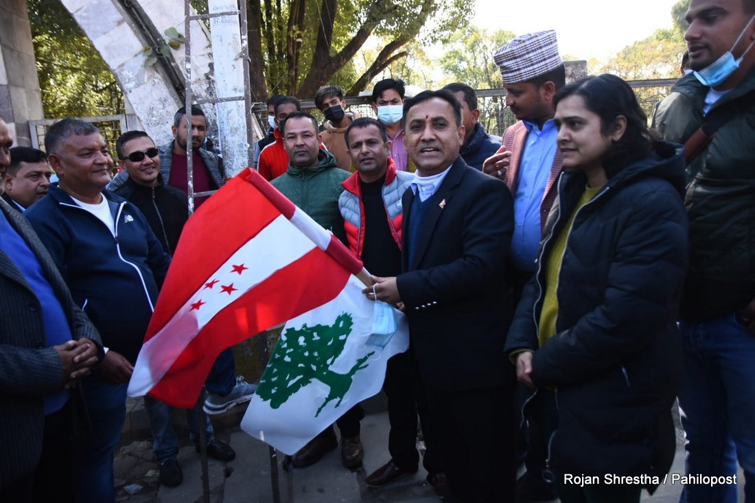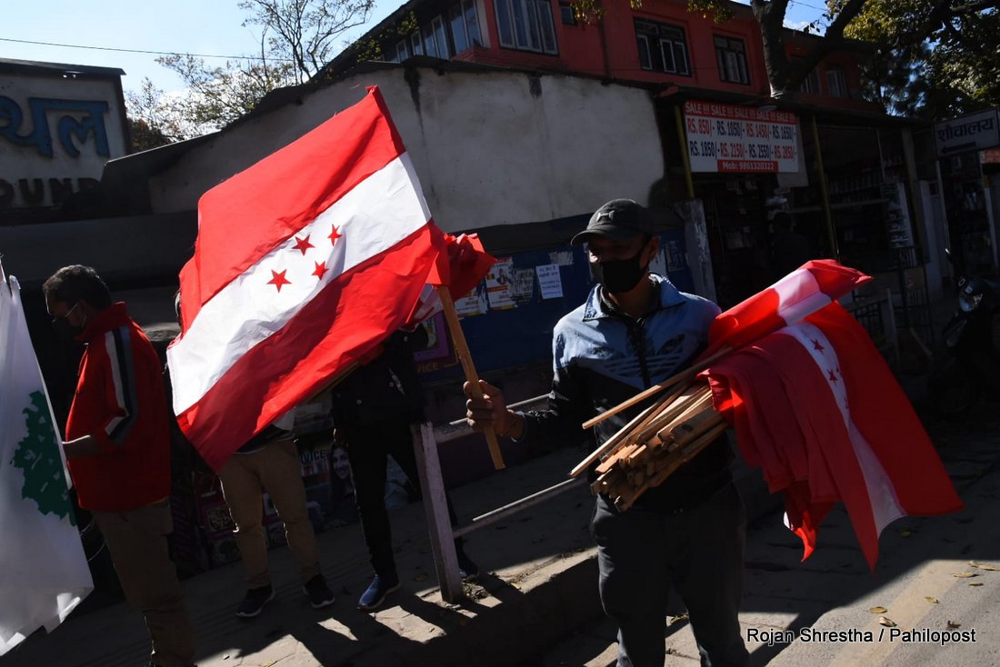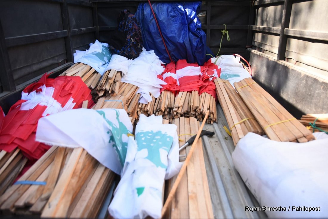 कांग्रेस प्रवक्ताले झण्डा हस्तान्तरण गरेसँगै भृकुटीमण्डपमा झण्डा राख्न सुरु गरिएको छ। कांग्रेसल रुख र चार तारे झण्डा गरी भृकुटीमण्डपभर करिब ५ हजार झण्डा राख्ने जनाएको छ।