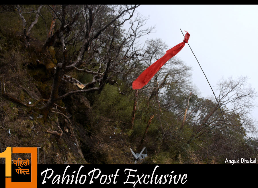 दुर्घटनास्थल घाम कहिल्यै नलाग्ने ठाउँमा रहेछ। ढुंगामाथि उम्रिएका निंगालो घारीबाहेक फाट्टफुट्ट रुखहरु छन् यहाँ। छिनमै हुस्सु र पानीका छिटाले छोपिहाल्ने भएकाले यहाँको मौसम अनुमान गर्न सजिलो छैन। हेलिकप्टर दुर्घटना भएको चार दिनसम्म पनि फेला नपर्नुमा यही मौसम कारण बन्यो।